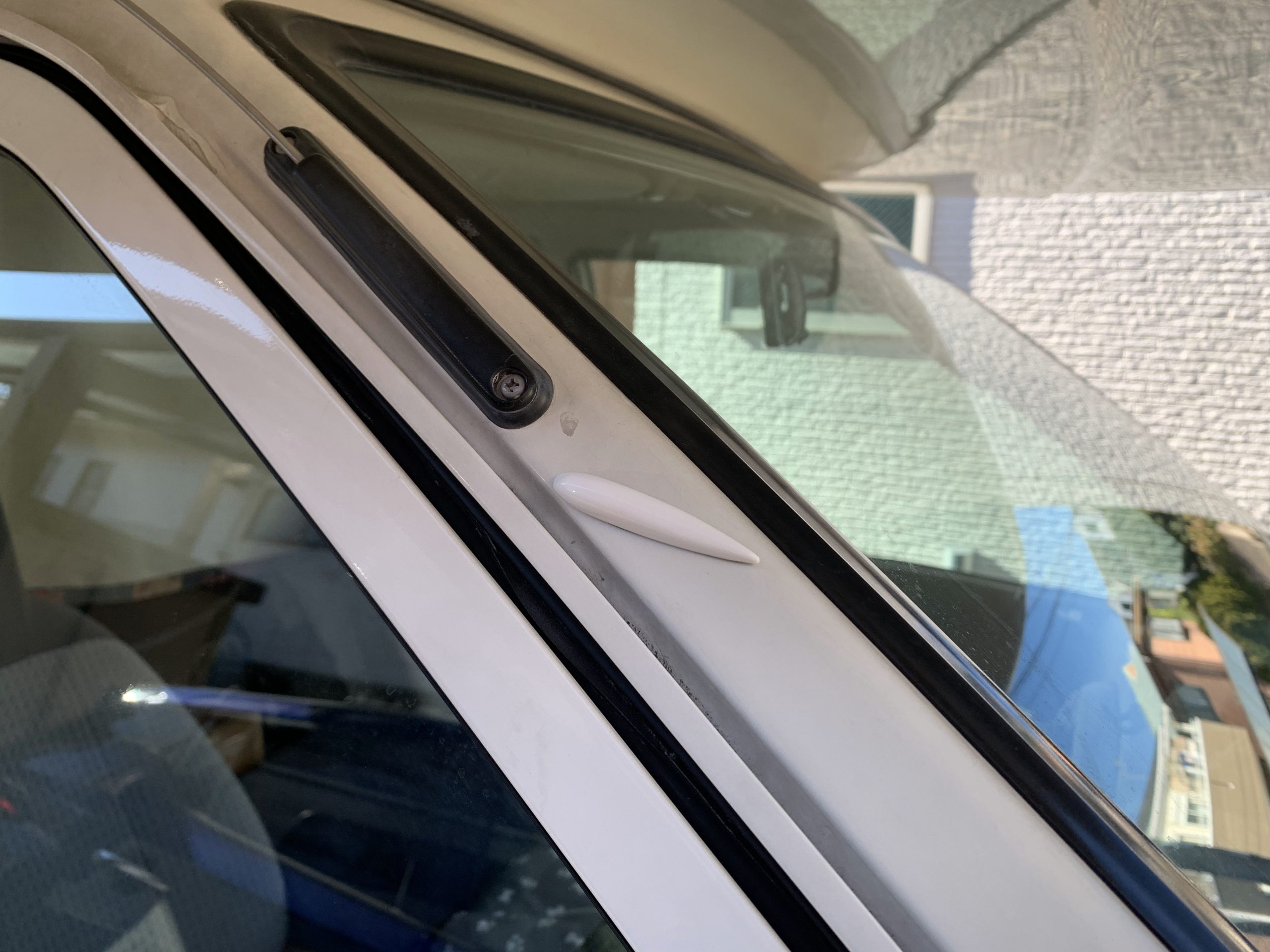 同型車に乗っているキャンピングカー仲間がボルテックスジェネレーターを勧めてくれたので、早速、Amazonや楽天でシール式のボルテックスジェネレーターを購入して付けてみることにしました。