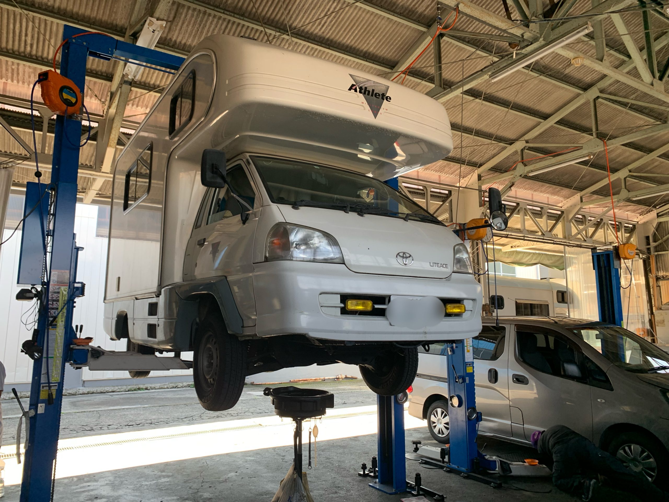 いつもの整備工場に営業車兼移動オフィスのキャンピングカーをオイル交換に出しました。