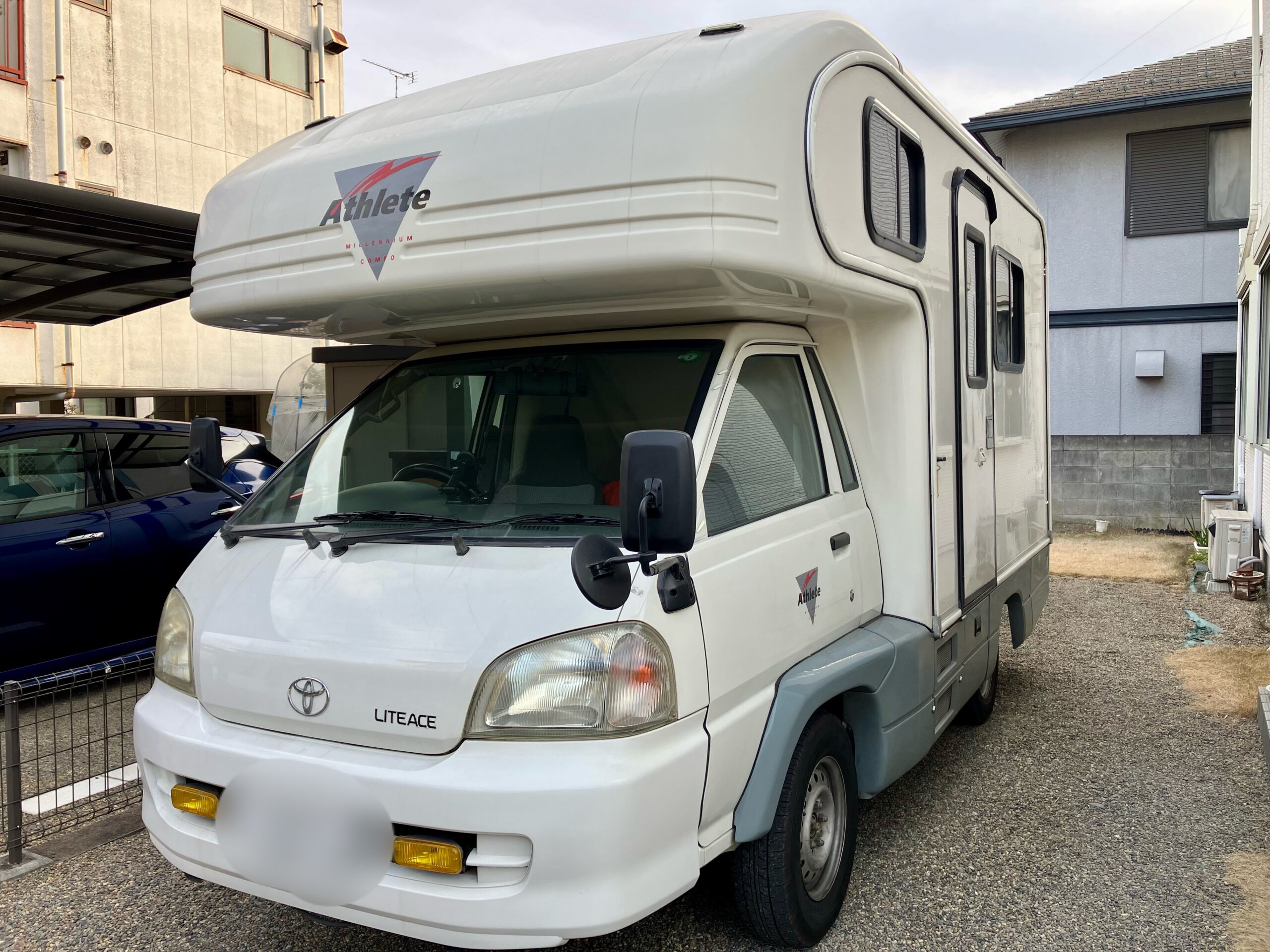 ちなみに、このキャンピングカーはグローバル社のアスリートという名前の車なのですが、これを作ったメーカーは2009年に倒産しているため、エンブレムを貼り直したりメーカーのサポートは受けられないし、新品のステッカーも出回っていません。
