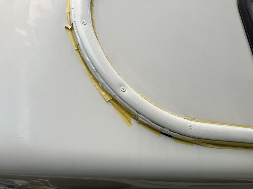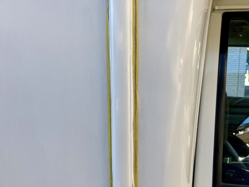 キャンピングカーのサイドモールを塗装しました! 2025年12月4日 最終更新日時 : 2025年12月4日 あっとほーむ こんにちは!宇都宮市のホームページ作成事務所あっとほーむの藤本です。 当事務所には営業車兼移動オフィスの23年落ちのキャンピングカーがあります。古い車で、あちこち劣化しているので自分でできるところは自分でコツコツ手入れをしています。今回は側面のゴム製のモールがカビで汚れていたので塗装しました。紙やすりで研磨して塗装のノリを良くして、マスキングしてペンキ塗り・・・想像より大変でした・・・(;^ω^) 教訓:車は刷毛で塗るもんじゃない ビフォー アフター うーーん・・・自己満足の領域・・・(-_-;)
