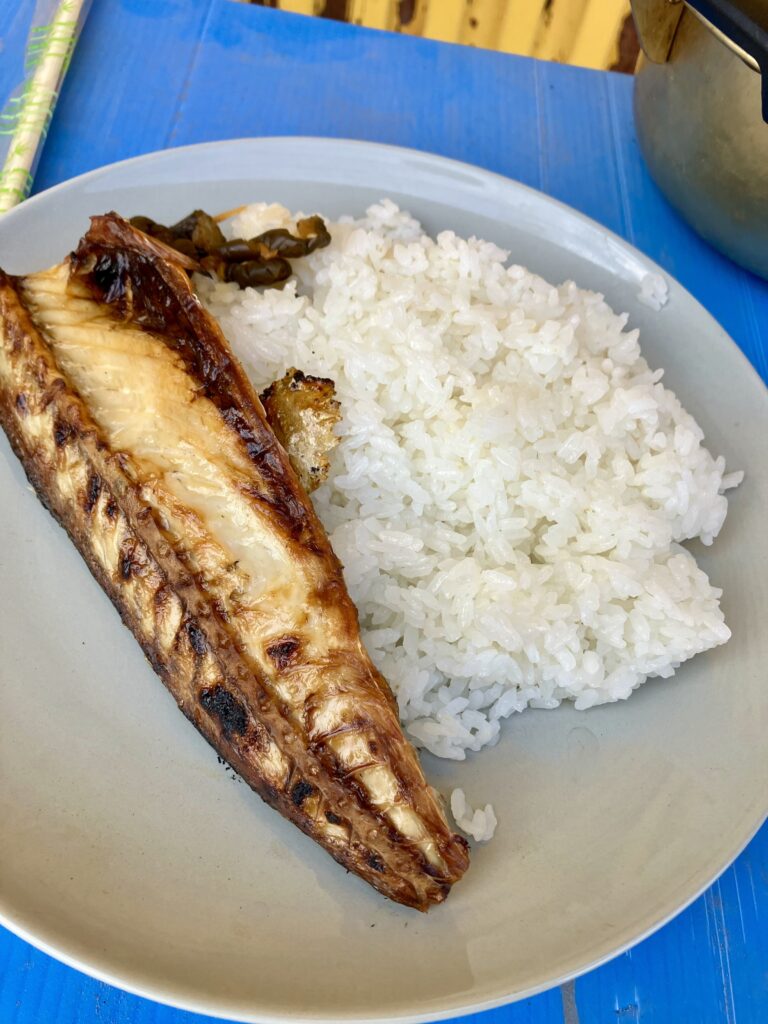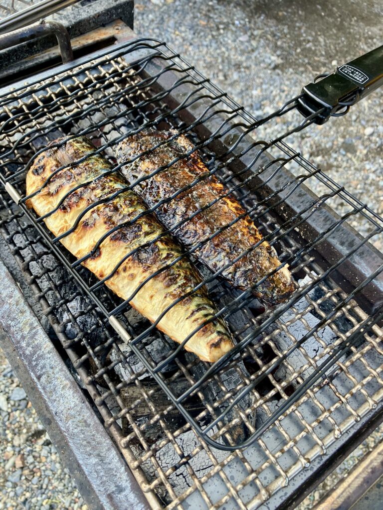 お昼ごはんに、炭火で塩サバと文化サバを焼いていただきました!
