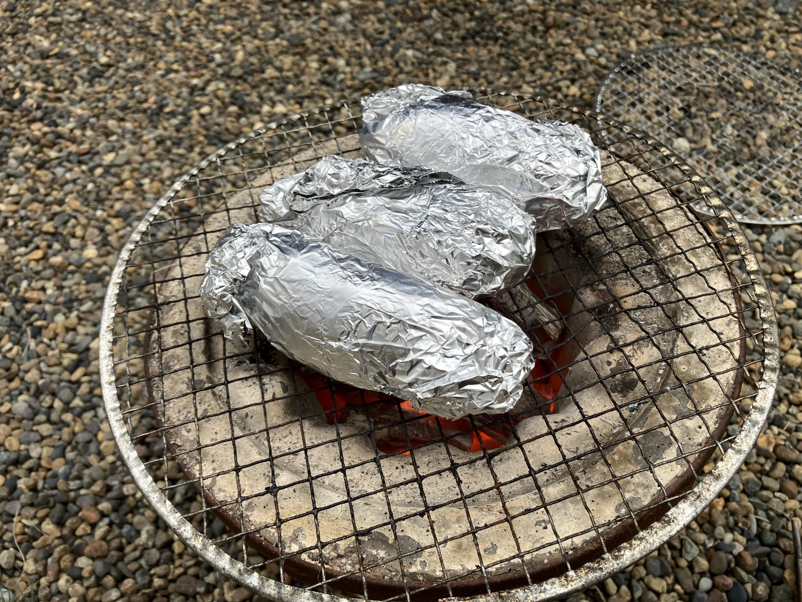 黒炭は火持ちが良くないと言われますが、ちょっと何かを焼くくらいなら十分・・・・・・