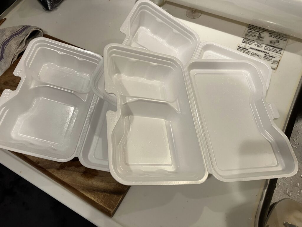 お出かけした際にテイクアウト弁当などの器は可能な限りリユースして、その後は分別して処分しています。
