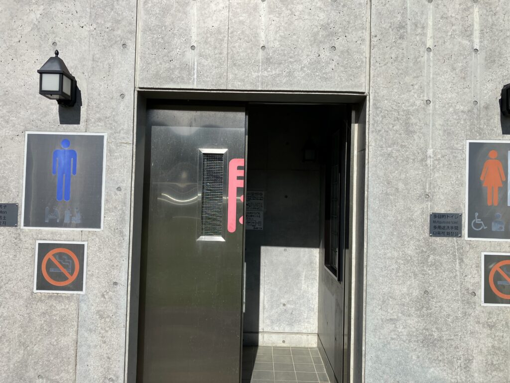 左が男性用トイレで右が女性用トイレで、真ん中が男女共用の多目的トイレという作りになっていました。