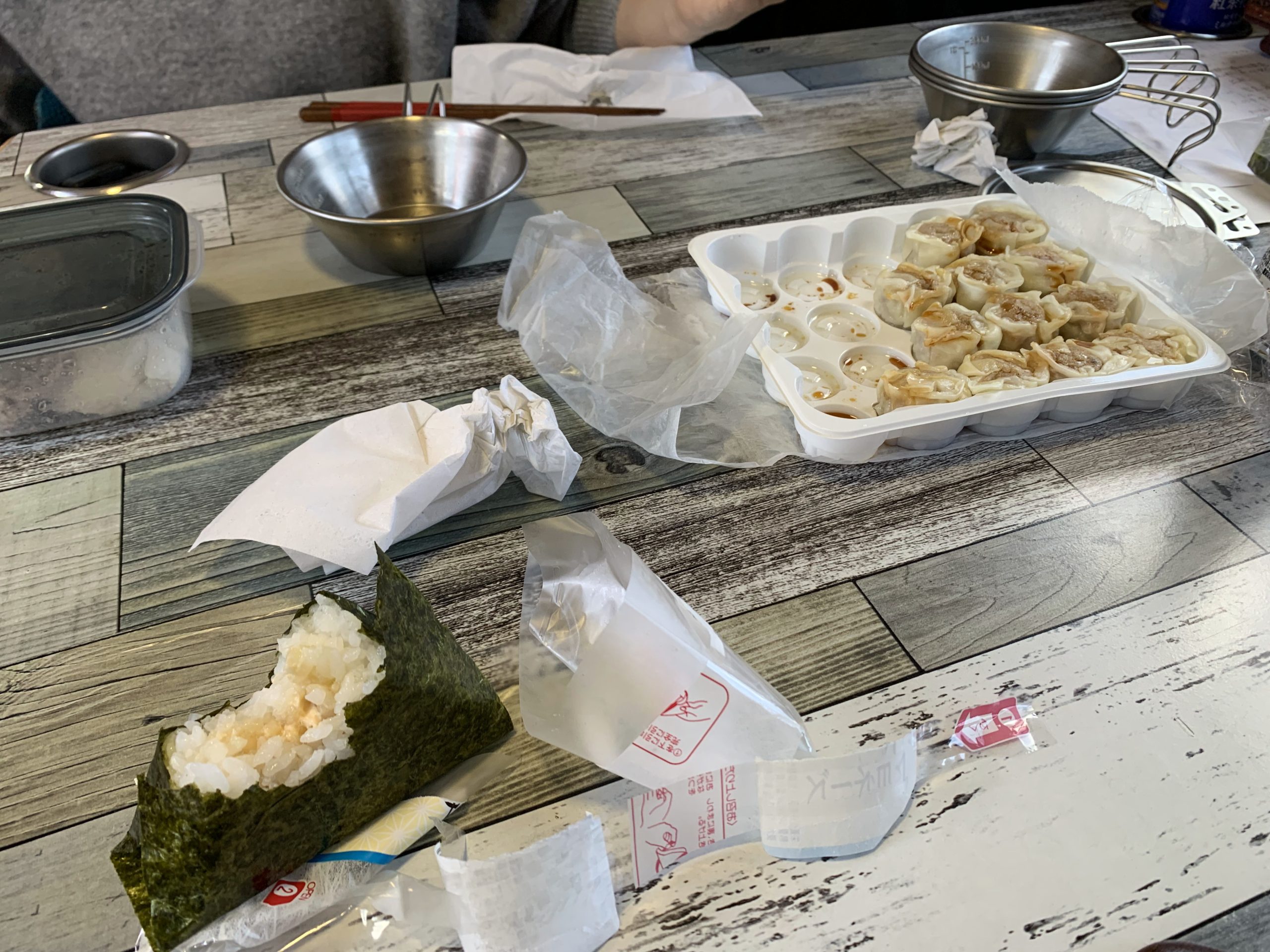 談合坂SAは激混みだし、りんた氏がいるのでお店には入れないのでお昼ご飯は売店でおにぎりと焼売を買って車内で食べました。